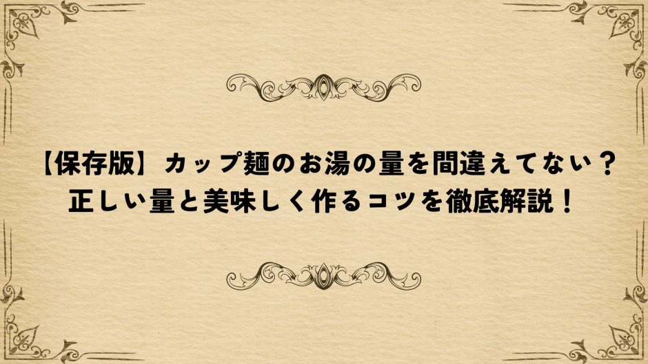 これらをうまく組み合わせることで、お湯の量に左右されずにカップ麺を楽しめる環境を作ることができます。